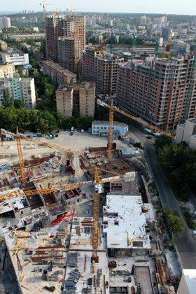 A sprawling construction site on Saperne Pole Street in central Kiev. Photograph: Sergei Chuzavkov/AP