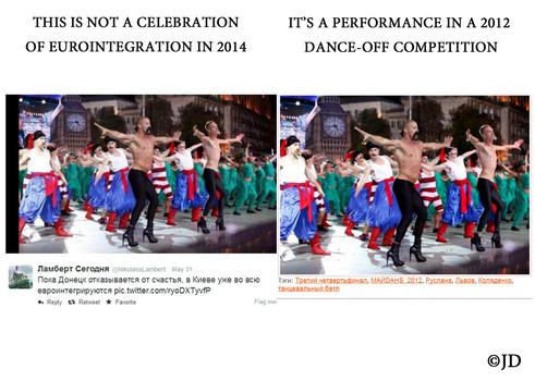 18. A 2012 performance from a dance competition was falsely portrayed to be the Ukrainian celebration of the upcoming Euro integration in 2014.