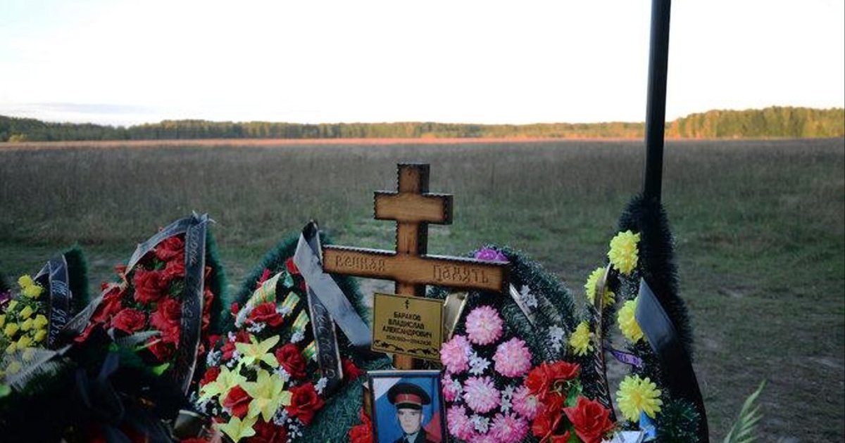 Selizovo, Russia — In a far corner of a small cemetery outside this tiny village by the Oka River, a black flag proclaiming the military might of Russia’s tank forces ripples in the wind above the recently dug grave of Sgt. Vladislav A. Barakov.