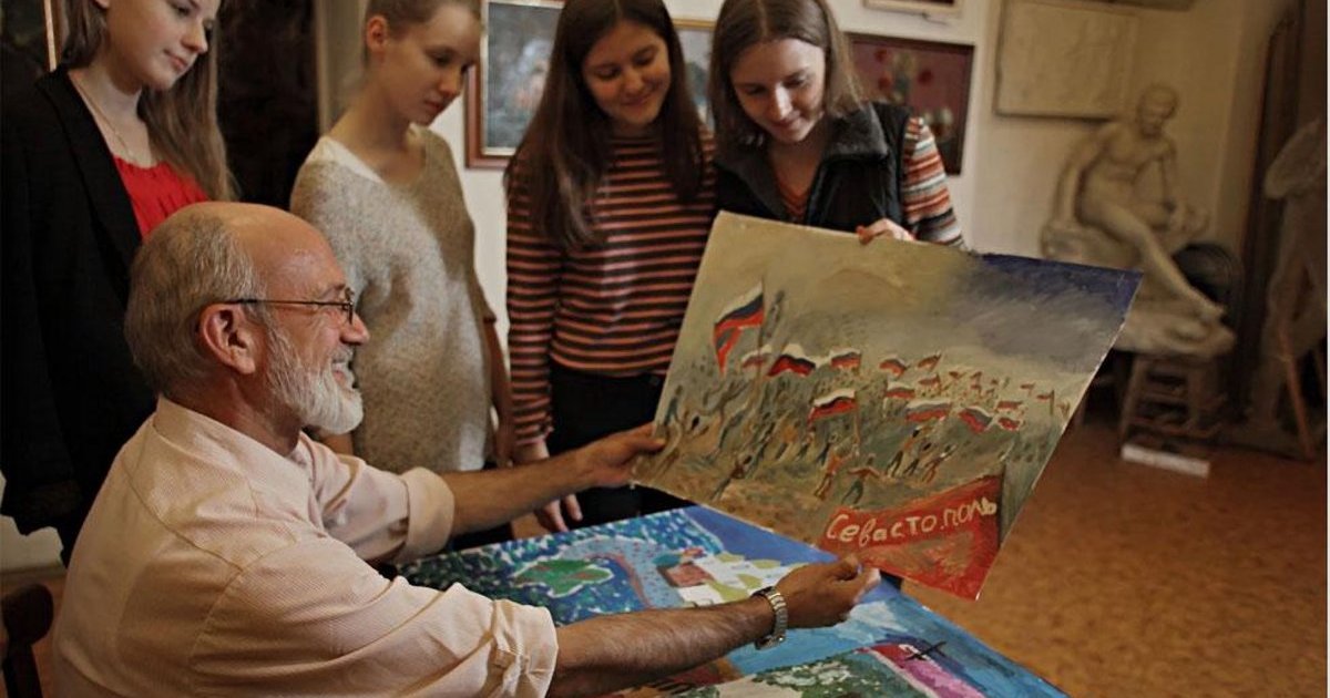 Local authorities have promised him a new building for his art school, whose students learn painting and sculpture on rickety Soviet-era wooden stools.