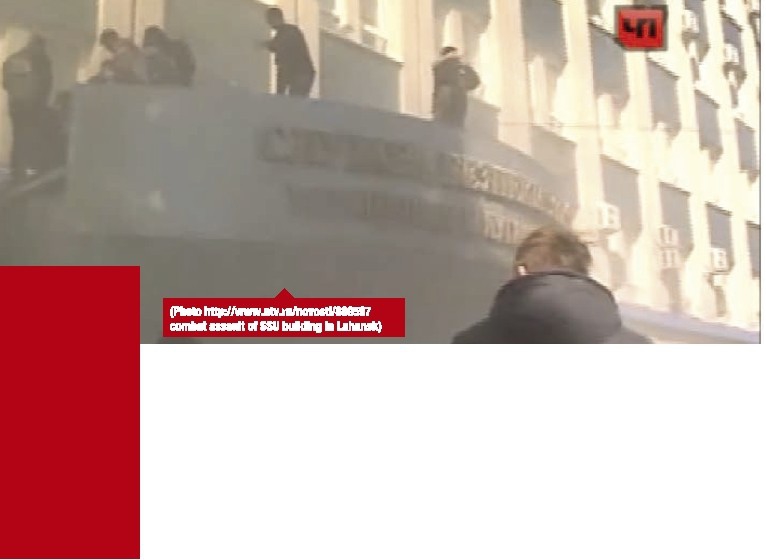 Russian state-controlled media had gone to great lengths to make even more population in Luhansk and Donetsk regions feel hatred to Ukrainian authorities and army. At the same time, Russian media to the maximum extent wandered from a subject of the presence of the Russian army and soldiers in Ukraine, from a subject of weapons supply to separatists from the Ministry of Defence of Russian Federation, etc. At that time, Russian media had been showing Russian citizens fighting alongside separatists, so called "tourists" and "soldiers on leave", whose distinctive Russian accent they could not hide.[12,13]