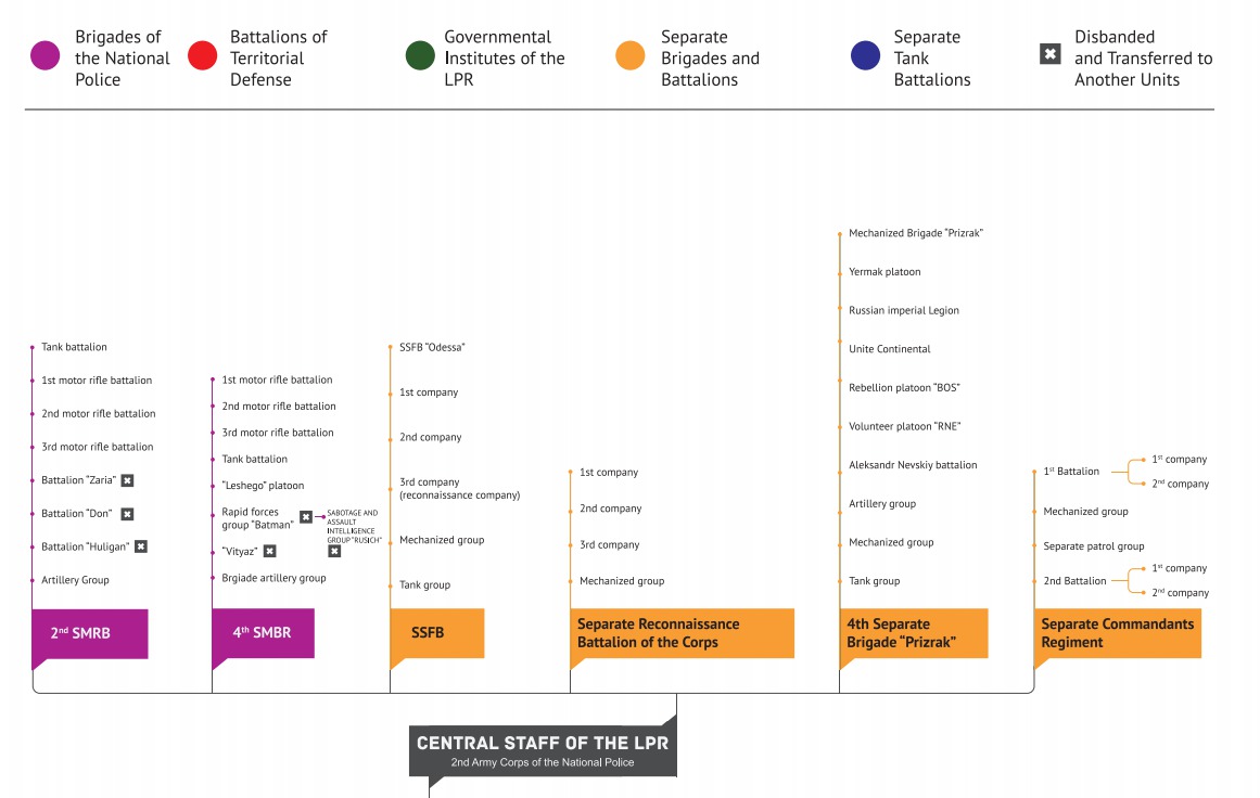 During reorganization of the separatists' "LPR" army were included into 2nd Brigade NM as the 1st battalion.