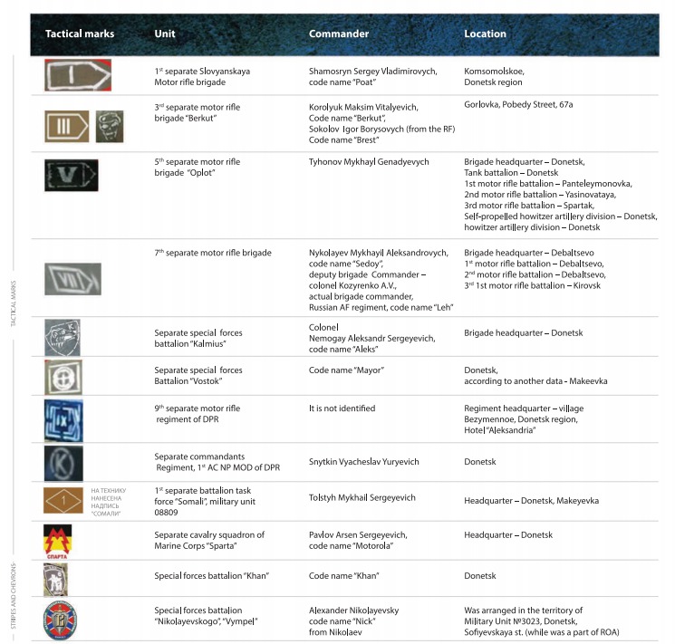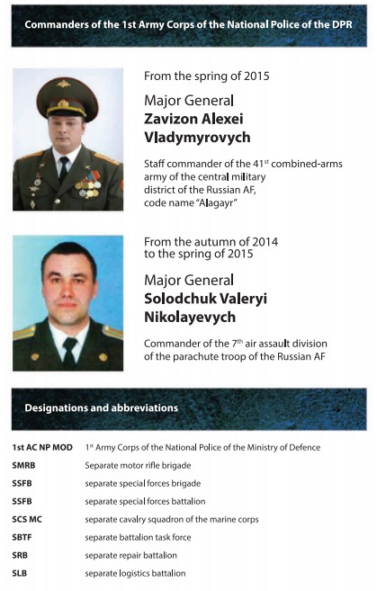 Mikhail Gennadievich Tikhonov - Brigade commander. Served in Afganistan. / Sergeyi Nikolaevich Rozhkov - Deputy commanding officer for personnel affairs of the 5th Donetsk motorized rifle brigade "Oplot".