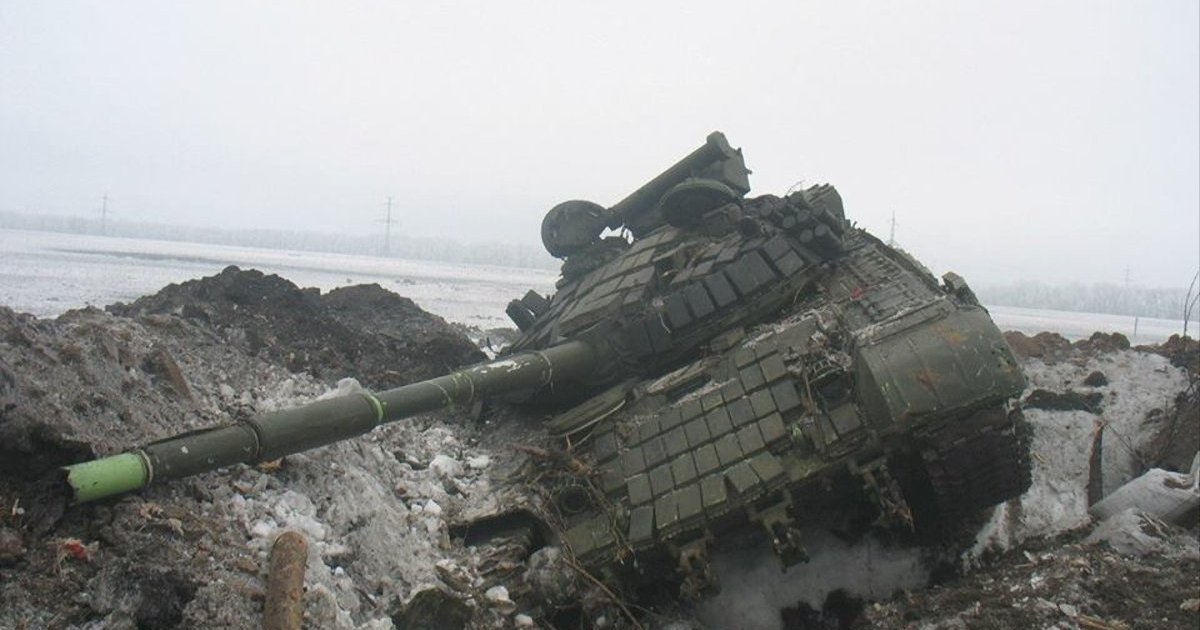 The enemy's T-72B1 rode over a dug-out shelter of "Vovk" strong point and was destroyed.