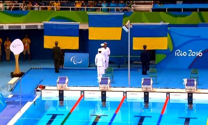 Ukrainian flags raised as Ukrainian Paralympians took all three medals in one of the swimming competitions