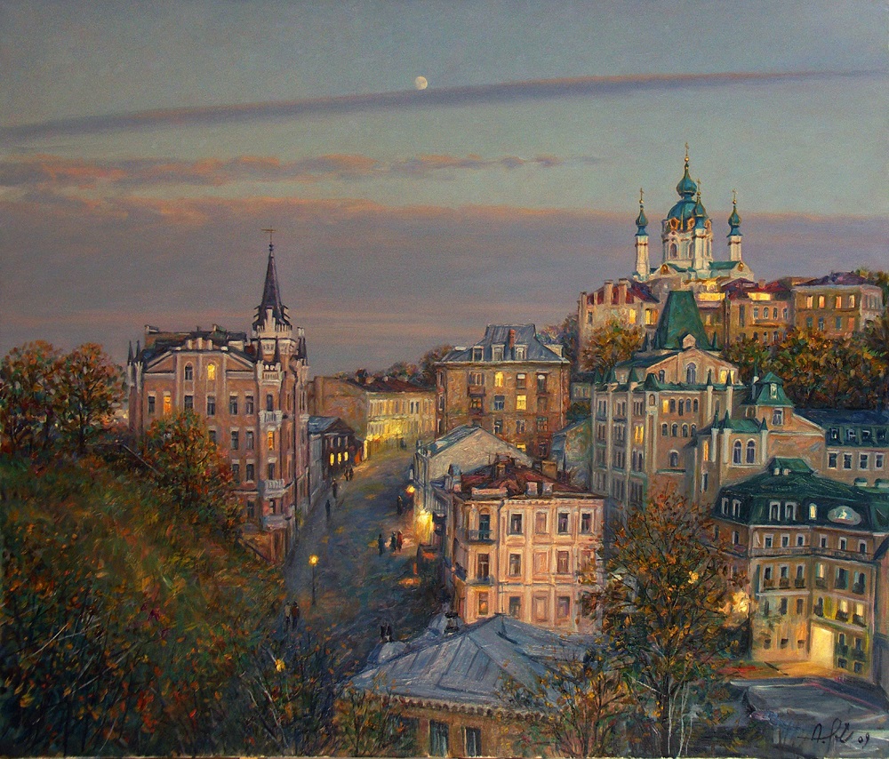 - Andriivskyi Descent. This wandering ancient street is full of museums, theaters, and restaurants. Both sides of the street are covered with souvenir shops. This is one of the most vivid and heartfelt places in the city. Street experimental concerts always take place there. The street is overlooked by the grand Andriivska church. Make sure to visit the One Street Museum — you will learn how this once was the poorest street of Kyiv, how wars affected it, and which celebrities used to live here.