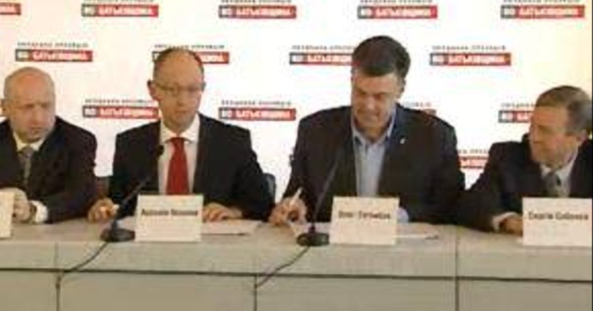 Censor.NET reports that signing was attended by Yuriy Hrymchak, Anatoliy Hrytsenko, Oleksandr Turchynov, Arseniy Yatsenyuk, Ehor Sobolev, Borys Tarasyuk, Vyacheslav Kyrylenko, and Oleh Tyagnybok.