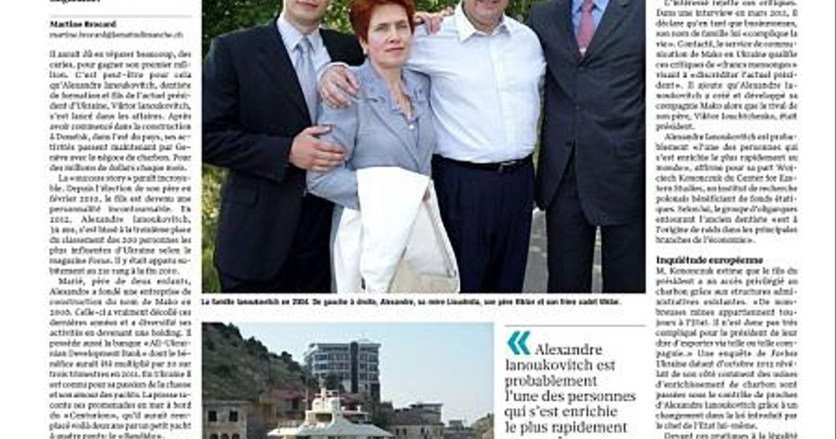 Swiss daily Le Matin Dimanche writes that the son of Ukrainian President Yanukovych, Oleksandr became the king of coal in Geneva.