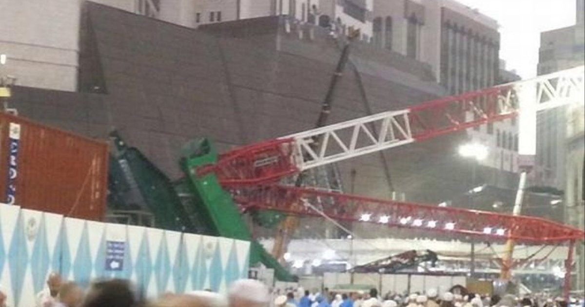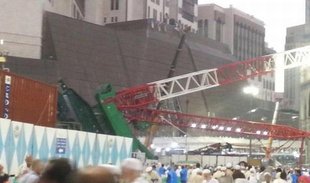 Mecca's and world's largest mosque al-Haram has been hit by a collapsed construction crane. 87 worshipers are reported dead, as many as 184 people have been injured.
