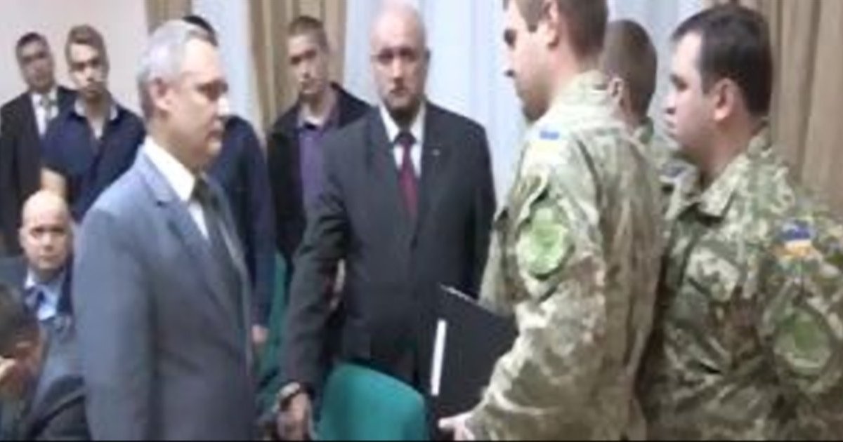 At the beginning of the third minute of the footage the suspect was asked to stand up and introduce himself. After that several operatives in uniforms have entered the room and conducted the detention. Head of the Military Prosecutor's Office Anatolii Matios and head of SBU Vasyl Hrytsak have reported that the arrested person was a Colonel holding position of the deputy head of a department, Censor.NET reports.