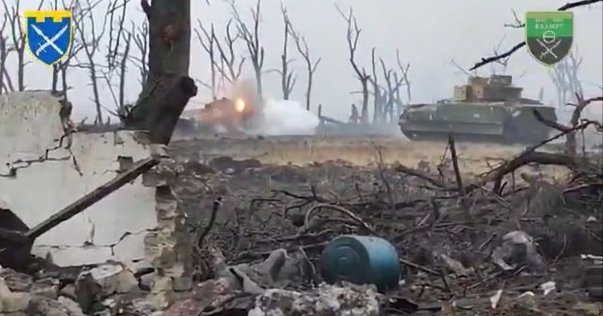The crew of a Ukrainian Bradley infantry fighting vehicle opened fire at point-blank range on a Russian IFV and destroyed it.