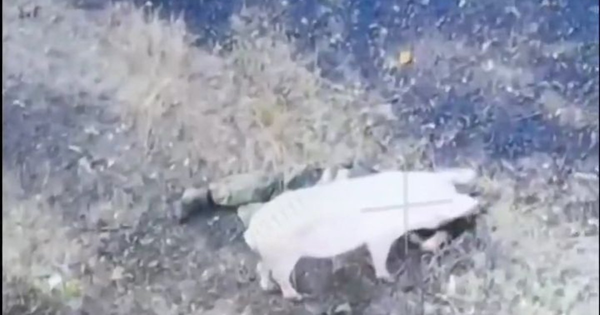 A video has surfaced showing a Defence Forces drone capturing a pig feeding on the body of a dead Russian assault trooper.