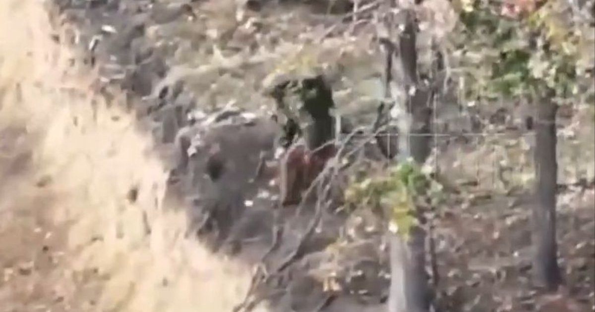According to Censor.NET, the video shows a Russian man running through a forest, jumping into an anti-tank ditch, taking off his helmet and shooting himself in the head.