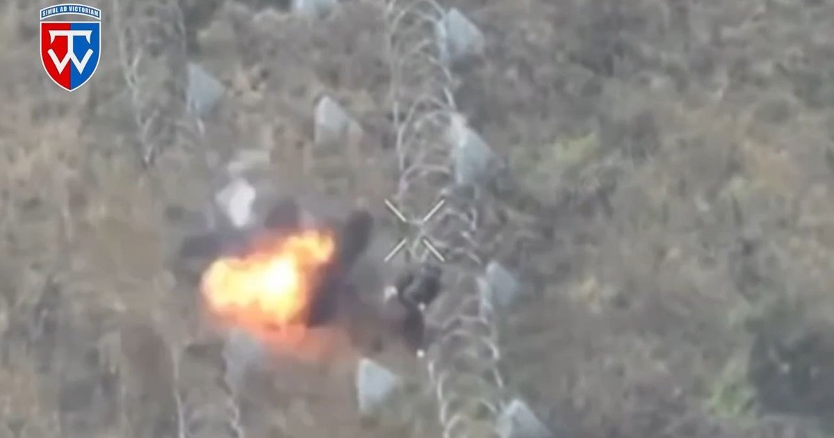 At that moment, Ukrainian drones flew in and hit the invader in the back.