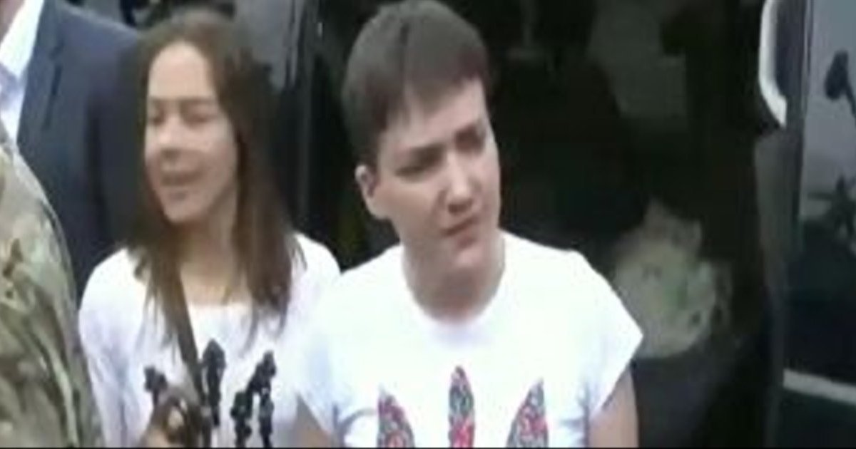 Nadiia Savchenko came out to journalists at Boryspil airport.
