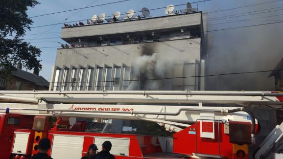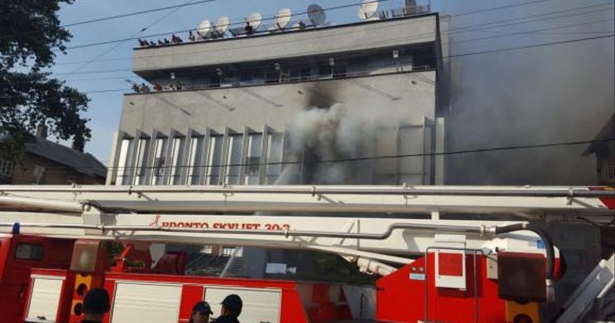 Unidentified persons set tires on fire outside Inter TV channel’s office on 23 Shchuseva St. in Kyiv. The fire also broke out inside the building.