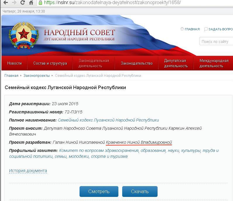 Кравченко - член рабочей группы по разработке нормативных актов "ЛНР", ее фамилия значится на проектах гражданского, гражданско-процессуального и семейного "кодексов".