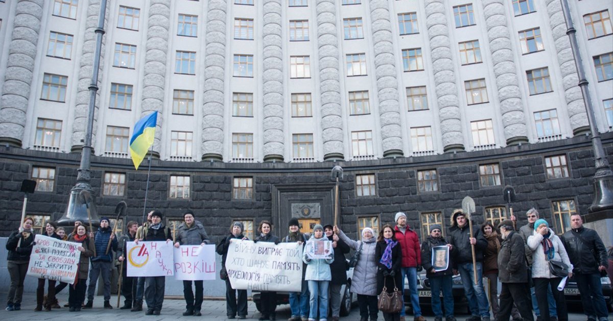 18 березня близько півсотні археологів вийшли під Кабмін проти нищівного для науки підписаного бюджету. Цьогоріч фонд заробітної плати археологів "схуд" майже на 15%, а отже, кожен третій науковий співробітник невдовзі залишиться без роботи - невблаганний процес скорочень вже запущено. Протестувальники передали листа прем'єрові із проханням переглянути бюджет.