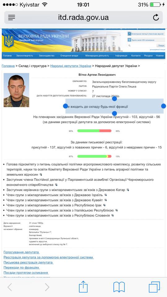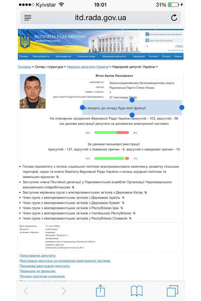 Охєндовського і більшість членів ЦВК зовсім не цікавить та ж сама норма Конституції (!), коли йде мова про позафракційного (див.сайт Верховної Ради, нижче - скріншот) депутата Артема Вітка, який пройшовши в парламент за списком Радикальної партії Ляшка, зрадив наших виборців і 18 вересня з трибуни ВР оголосив про вихід з фракції РПЛ.
