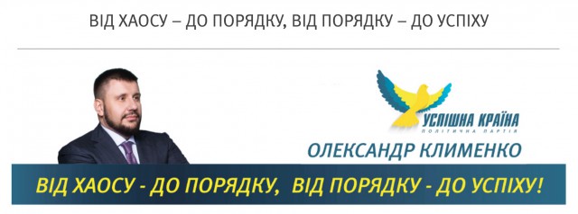 хедлайнера партии "Успішна Країна", почетным главой которой является Александр Клименко. Да-да, тот самый Клименко.