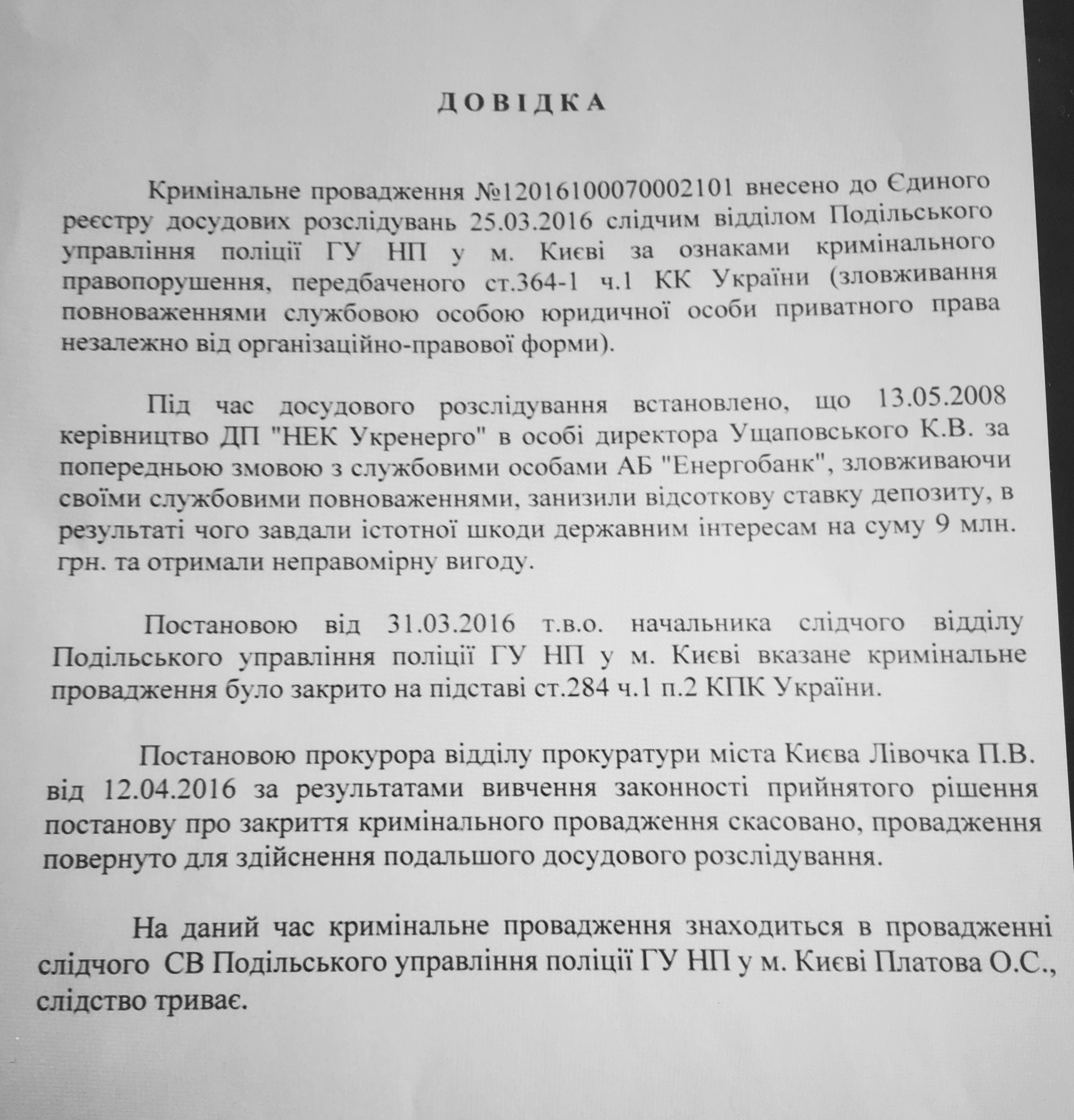 Давайте изучим справку о замечательной "энергобанковской" схеме, которую Константин Валерьевич придумал и реализовал, исполняя обязанности директора ГП "НЭК Укренерго".