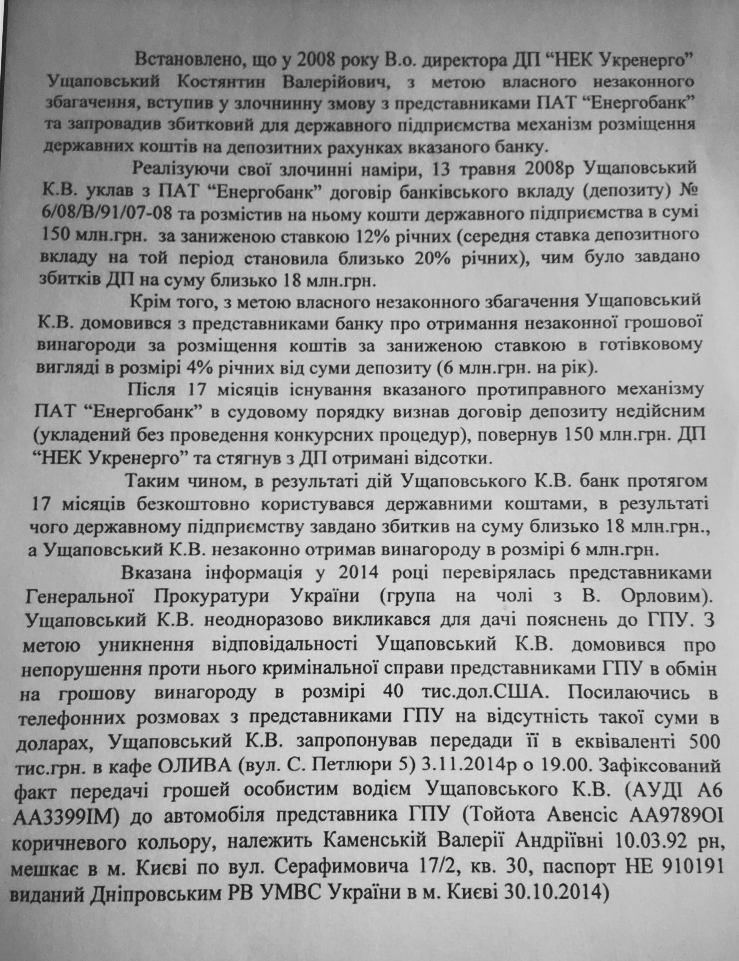 Также прошу вас оценить зафиксированный правоохранительными органами факт многомиллионного "откатного" воровства государственных средств с участием господина Ущаповского.