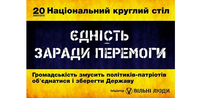 Патріотична громадськість закликає проукраїнські парламентські політичні сили 20 лютого провести Національний круглий стіл "Єдність заради Перемоги"