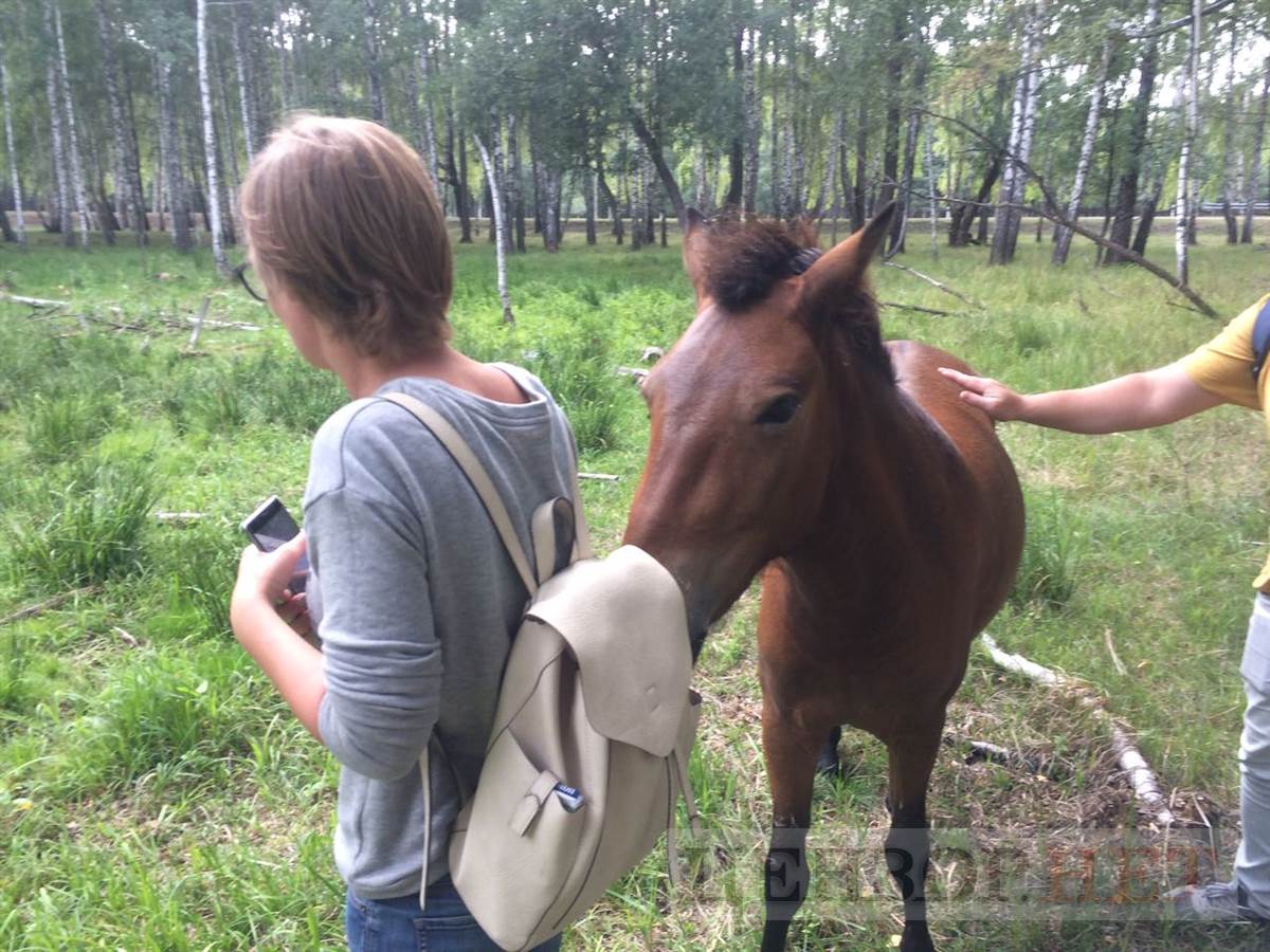 А одна из лошадей к нам подошла. Видимо, хотела чем-то полакомиться, но не найдя в наших руках даже кусочка сахара, стала грызть мой рюкзак.