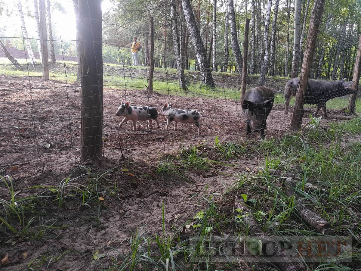 Лошади и олени ходят просто между деревьями, а вот свиньи - уже за оградой.