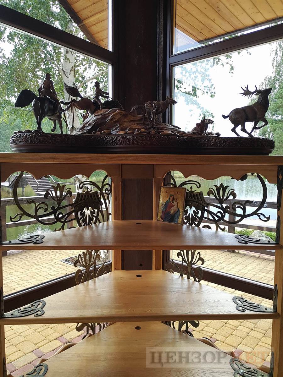Лукашенковский зубр, люстры, стилизованная этажерка, камин и тумбочка в бывшем Доме рыбака - это, пожалуй, и все, что мы смогли увидеть из предметов былой роскоши. Бармен рассказал, что резиденция разграблена. "Кем?", - спрашиваю. "Та тут же Киев-1 и Киев-2 стояли, и кого тут только не было", - вздыхает.