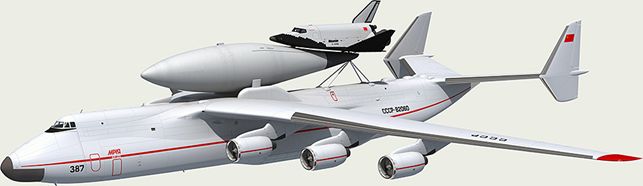 Самолет Ан-225 с космическим кораблем на фюзеляже
