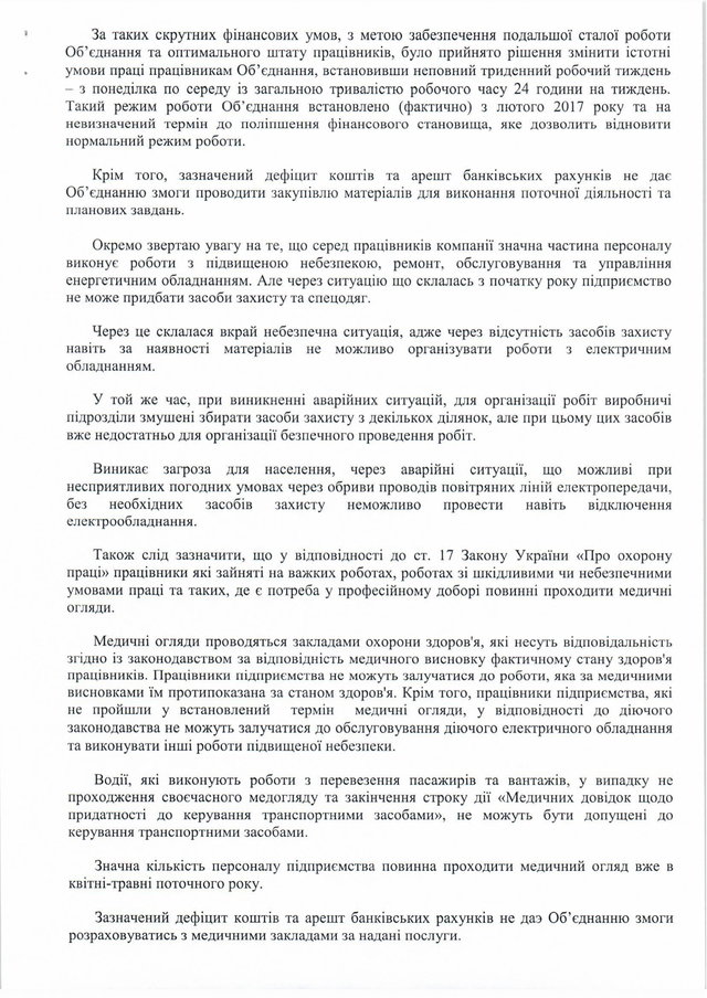 Вже зараз виникли значні труднощі з обслуговуванням підстанцій та електромереж – через відсутність медоглядів, через неможливість організації безпечної експлуатації автотранспортних засобів та спецмеханізмів.