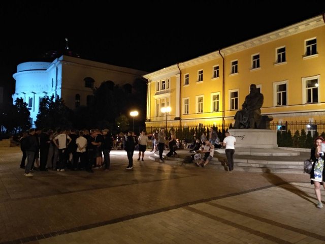 На ранок під пам'ятником знаходилося більше ста осіб - дівчата, священники, ветерани, протестанти і так далі. Вони мали каремати та спальники. Ночували під пам'ятником. Багато хто співав пісні. Велося жваве спілкування між людьми. Більшість знаходилися на перекритому поліцією від руху машин перехресті.