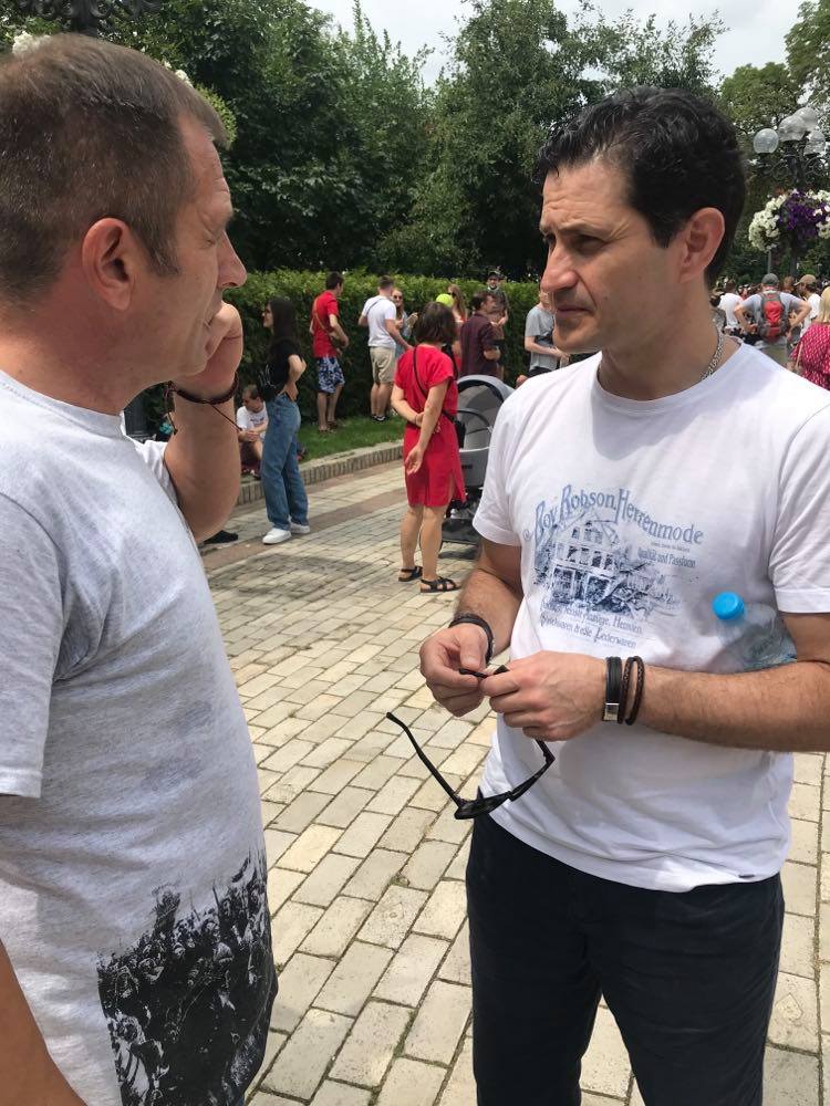 На фото: На мітингу зустрілися кримчани: Володимир Балух, який чотири роки провів в тюрмах Криму та Росії за свою проукраїнську позицію, та Ахтем Сеітаблаєв, відомий режисер та актор