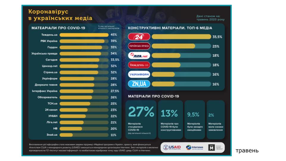 - COVID-19 відходить на другий план. Звіт з моніторингу онлайн-медіа // https://imi.org.ua/monitorings/covid-19-vidhodyt-na-drugyj-plan-zvit-z-monitoryngu-onlajn-media-i33275