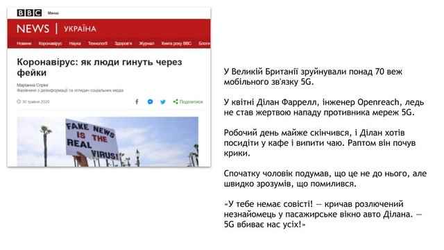 - Коронавірус: як люди гинуть через фейки // https://www.bbc.com/ukrainian/features-52847912