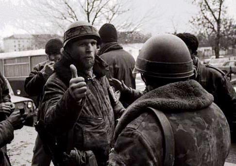 На шоломі характерна ознака українських добровольців – зелена пов’язка з написом «Україна». Грозний, зима 1994/1995.