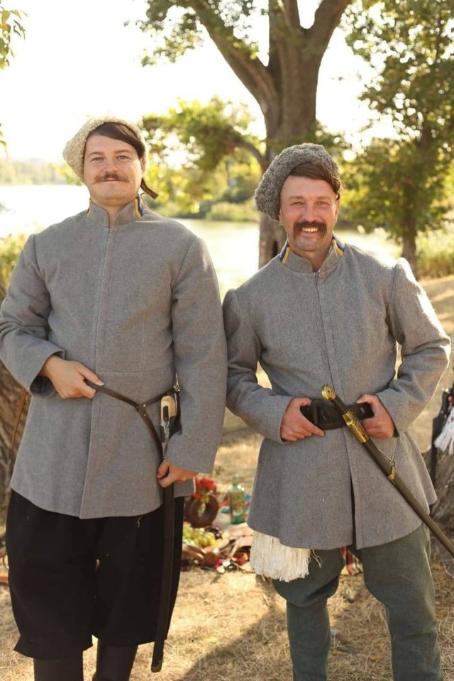 На фото – сучасні слобожанські реконструктори. На світлині звісно не однострої валківських гайдамаків, але у 2000-х командиром обох цих реконструкторів був Андрій Білецький. Харківщина, Літо-2020.