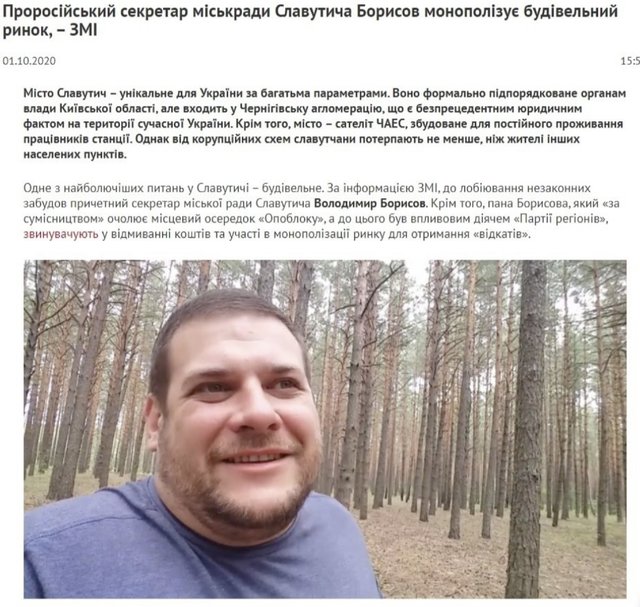 Володимира Борисова, секретаря міськради Славутича, «Стоп корупції» звинувачували в проросійській позиції і захопленні будівельного ринку міста.