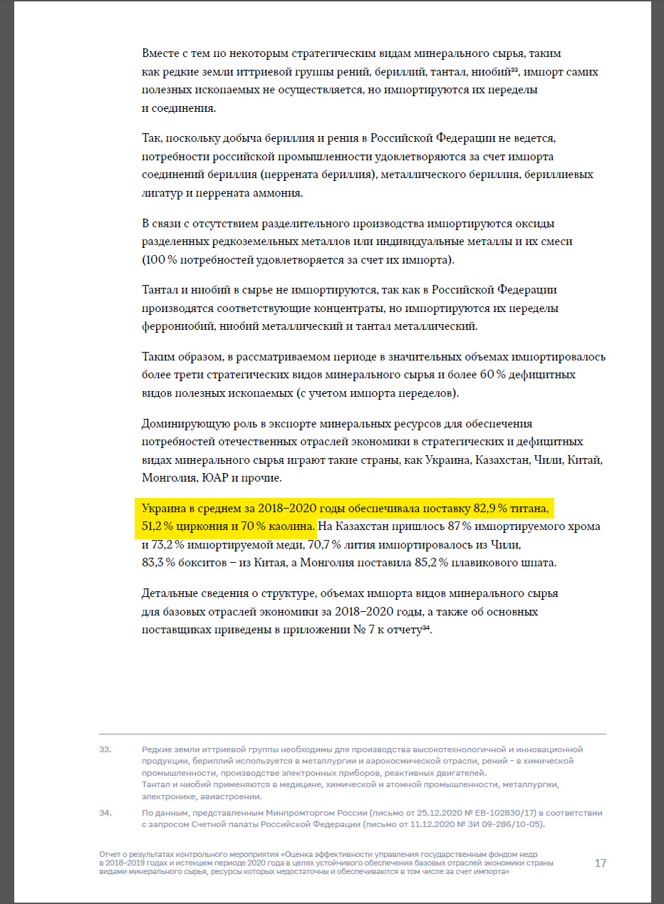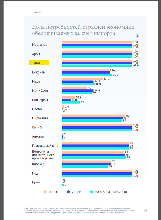 За офіційними даними Рахункової палати РФ, Україна постачає більше 82% потрібної Росії титанової сировини. Нас можна вважати майже ексклюзивним постачальником у світі, тому, якщо б Україна раптом припинила до Росії поставки титану, це завдало б потужного удару по стратегічній галузі ворога.
