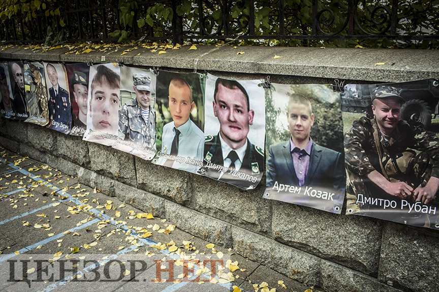 12 жовтня зранку в Києві розпочалася акція "Україно, ми є!". Родичі полонених та зниклих безвісти бійців з різних областей країни створили під стінами Офісу Президента живу "Стіну надії". Мета акції - нагадати владі про невиконані обіцянки.