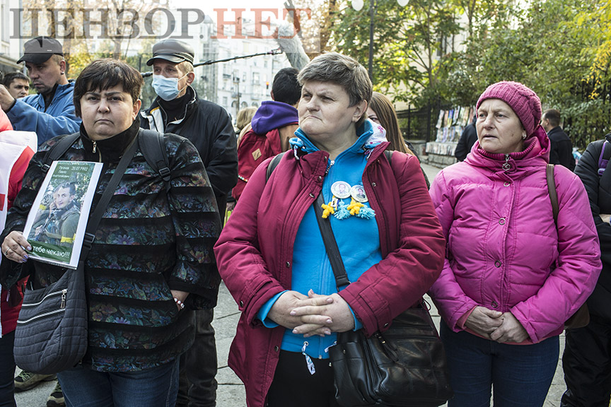 Ще ми вимагаємо створення координаційної ради при Офісі Президента з включенням туди представників родин. Люди їдуть з різних областей України в Київ і оббивають пороги різних організацій, щоб вирішите будь-які питання – фінансові, юридичні. Їм немає куди звернутися. Для того, щоб щось вирішити людина повинна приїхати з такими ж як і сама товаришами по нещастю, стати тут під Офісом і щось вимагати. Чому тут не може бути органу, до якого ми можемо звертатися з нашими проблемами?