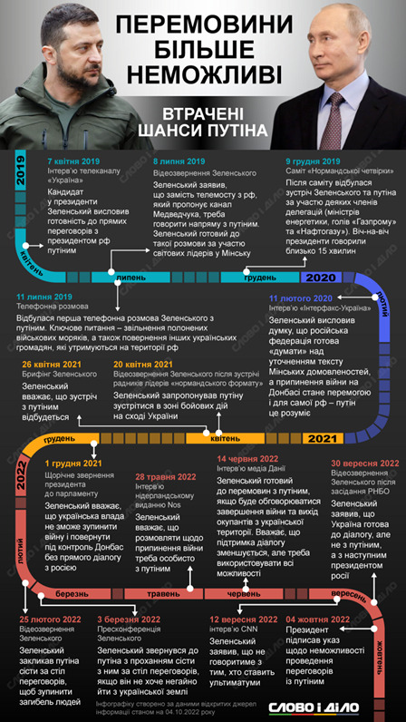 Ввечері того ж дня президент Зеленський своїм указом ввів в дію рішення РНБО України, яким констатував НЕМОЖЛИВІСТЬ проведення переговорів з воєнним злочинцем, терористом і вбивцею путіним.