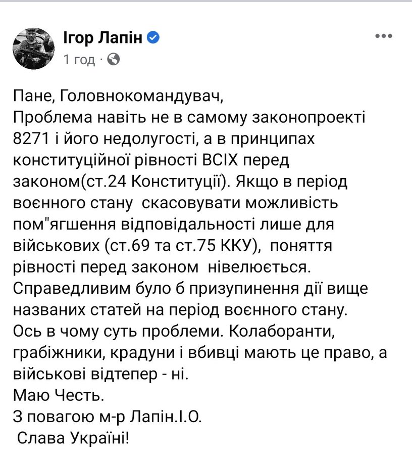 ( До речі, описаний законопроєкт суперечить відповідній тезі В. Залужного з його інтерв'ю журналу Economist у грудні 2022. )