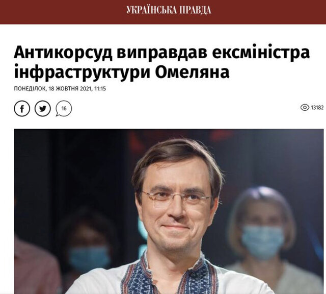 Нагадаю, що 18 жовтня 2021 року Вищий антикорупційний суд визнав колишнього міністра інфраструктури Володимира Омеляна невинним у справі зменшення портових зборів. Звинувачення проти нього не змогли довести. Суд вирішив виправдати Омельяна у зв'язку з відсутністю у його діях складу кримінального злочину, а витрати на липові експертизи від НАБУ було покладено на державу.