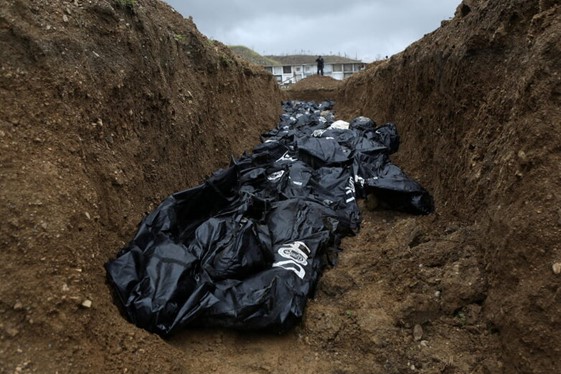 Трупів рашистів так багато, що українці змушені їх ховати в братські могили, щоб уникнути антисанітарії, оскільки російська сторона відмовляється їх забирати. Фото 18+ див тут: