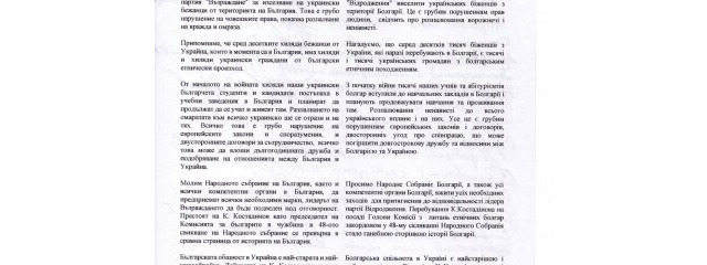 Таке нахабство отримало належну оцінку українськими болгарами. В вищезгаданому листі голови та старости громад, від імені болгарської спільноти Півдня України, закликали Народні Збори Болгарії та компетентні органи Болгарії вжити усіх необхідних заходів для притягнення до відповідальності лідера партії "Відродження".