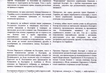 Голови громад Болградського та Ізмаїльського районів, старости болгарських сіл Одещиниу відкритому листі до Народних Зборів Болгарії заявили, що етнічні болгари України захищають свою державу і свої домівки від російської окупації, яка несе безправ’я і утиски усіх народів, що спостерігається в окупованому Криму, в окупованих Маріуполі, Бердянську, Мелітополі.