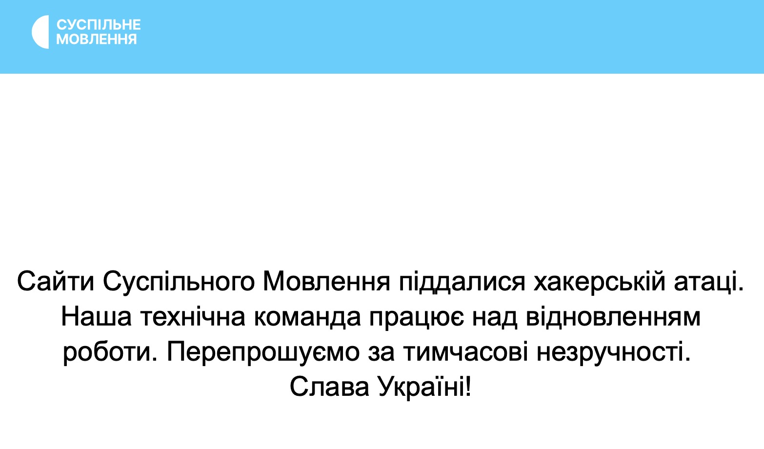 Сайт Національної суспільної телерадіокомпанії «Суспільне мовлення» (і не тільки сайт) покладено рашистськими хакерами.