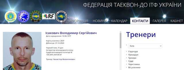 На фото: інформація з сайту Федерації таеквон-до ІТФ України